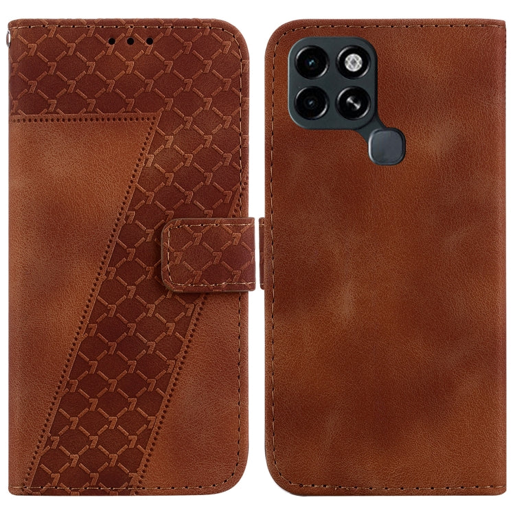 Estuche para Infinix Smart 6 de Cuero en Relieve en Forma de 7 (Marrón)