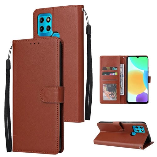 Funda para Infinix Smart 6 de Cuero Multifuncional con 3 Ranuras para Tarjetas (Marrón)