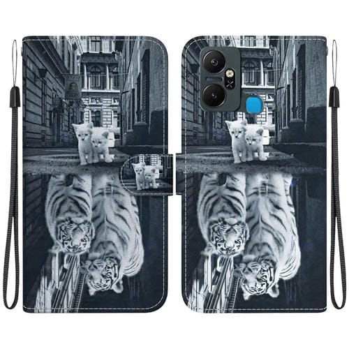 Funda de Cuero para Infinix Smart 6 Plus con Dibujo Coloreado y Textura de Cristal (Reflejo de Tigre Gato)
