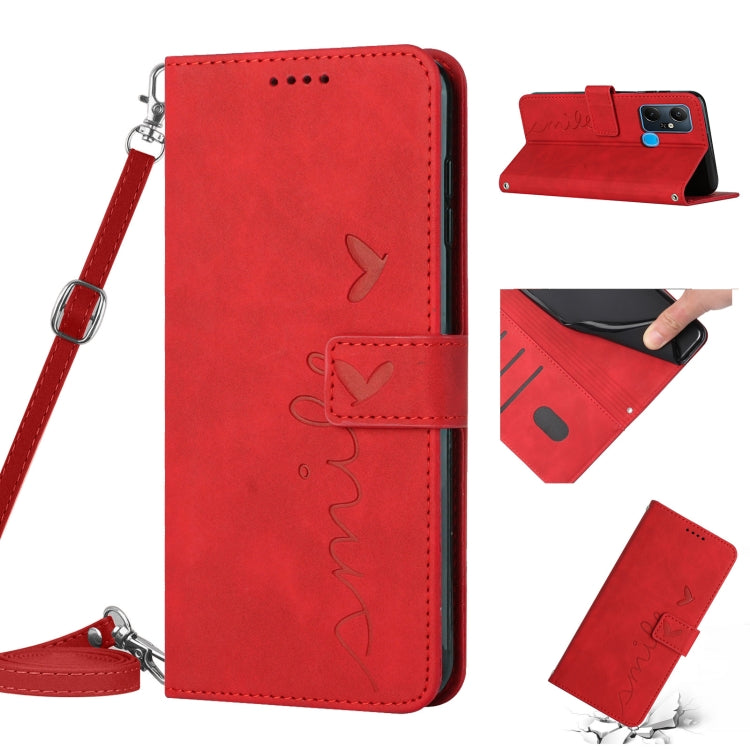 Funda de Cuero para Infinix Smart 6 Plus con Cordón y Diseño Heart Pattern (Rojo)
