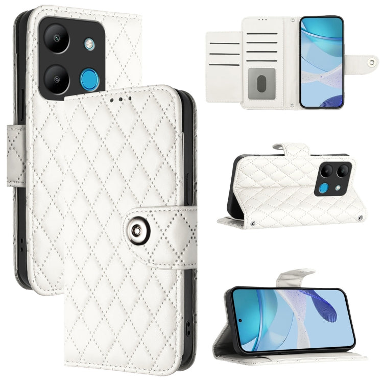 Pour Infinix Smart 7 India Étui de téléphone à rabat en cuir à texture rhombique avec lanière (blanc)