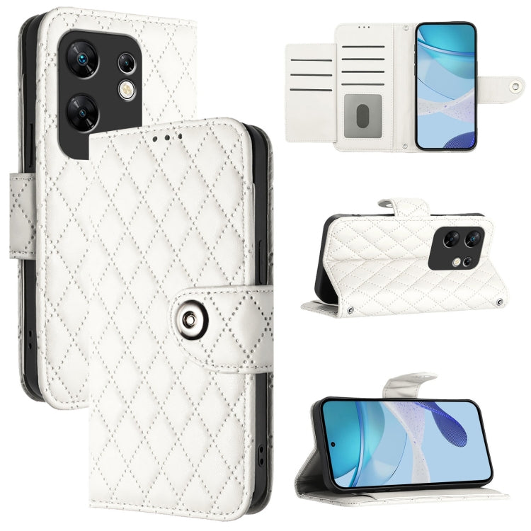 Funda de Cuero con Tapa para Infinix Zero 30 4G con Textura Romboidal y Cordón (Blanco)