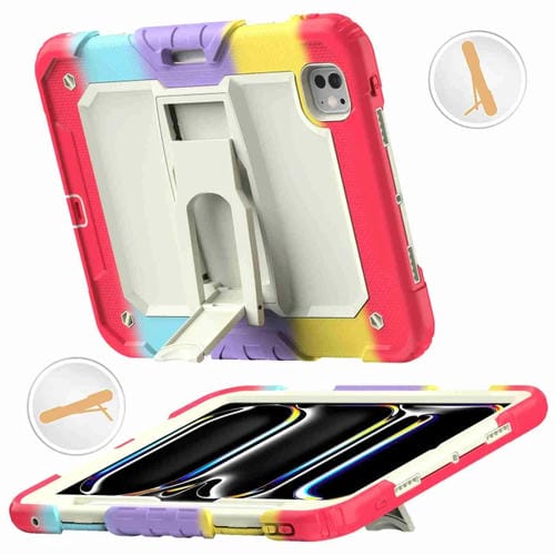 Funda de Silicona Hídrica para iPad Pro 11 (2024) con Correa y Soporte (Rojo Camuflaje)