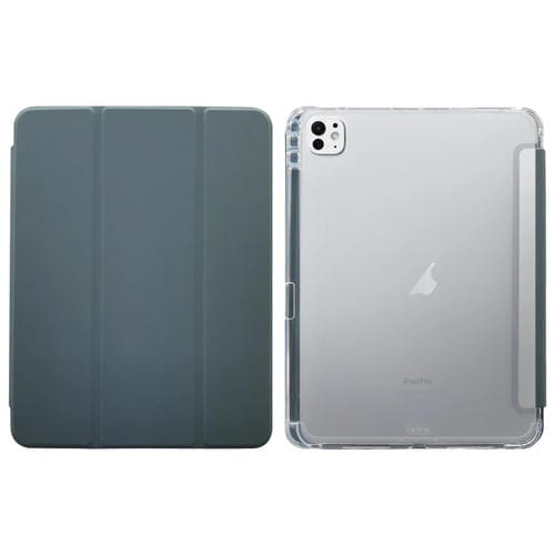 Funda de Cuero con Textura Prensada Eléctrica 3 Pliegues para iPad Pro 11 (2024) (Verde Oscuro)