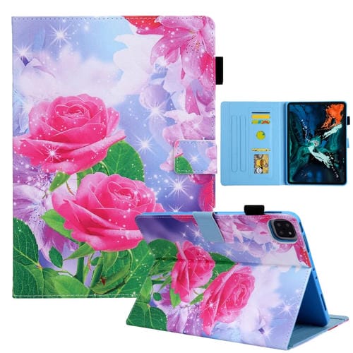 Pour iPad Pro 11 2024 Étui pour tablette intelligente en cuir à dessin coloré (rose rouge)