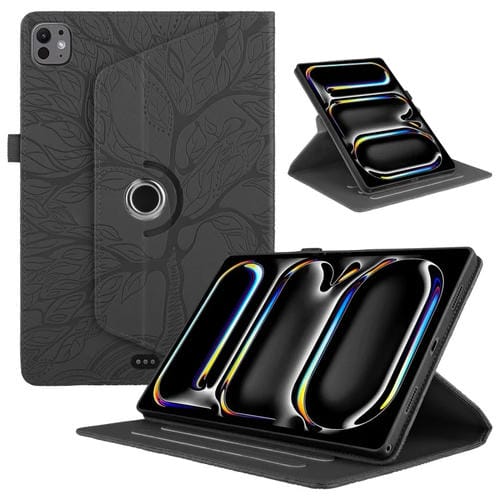 Funda de Cuero con Rotación y Relieve Árbol de la Vida para iPad Pro 11 (2024) (Negro)