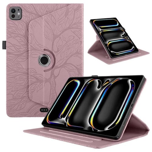 Funda de Cuero con Rotación y Relieve Árbol de la Vida para iPad Pro 11 (2024) (Oro Rosa)