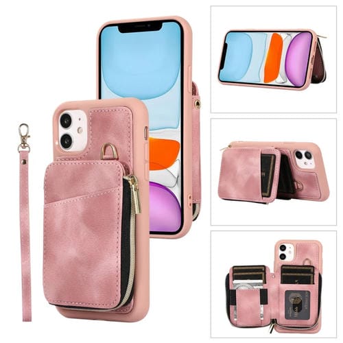 Funda Trasera para iPhone 11 con Bolsa de Tarjeta y Cremallera (Rosa)