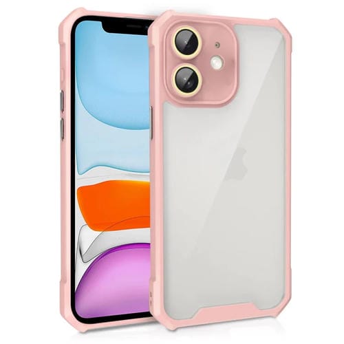 Estuche Acrílico para iPhone 11 a Prueba de Golpes con Película de Vidrio para Lentes (Rosa)