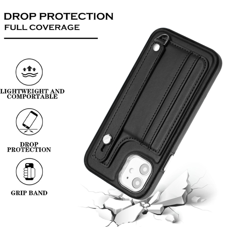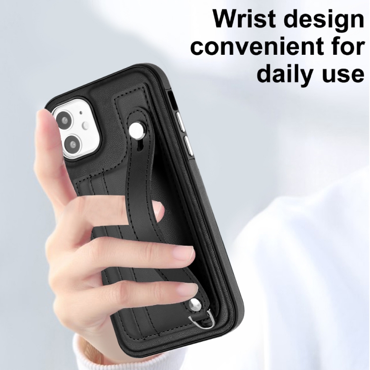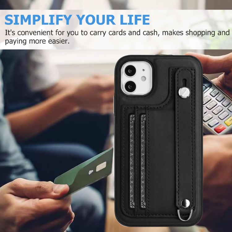 Funda de Teléfono iPhone 11 Cuero a Prueba de Golpes con Correa para Muñeca (Negro)