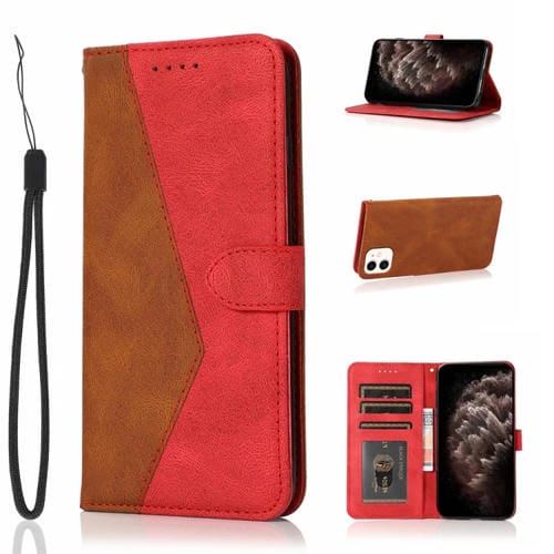 Funda de Teléfono iPhone 11 Cuero Costuras Dos Colores (Marrón Rojo)