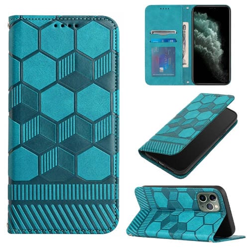 Funda de Teléfono iPhone 11 Pro Tapa de Cuero Magnético Textura de Fútbol (Azul Claro)