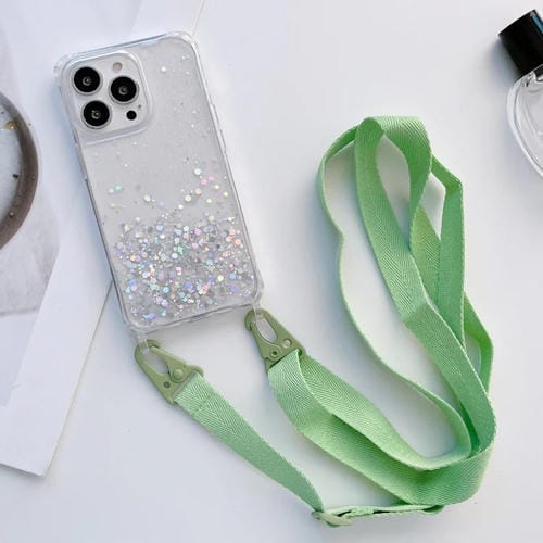 Funda para iPhone 11 Pro Lanyard Glitter Epoxy Clear Phone Case (Verde)