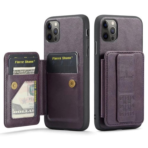Funda para Teléfono Fierre Shann iPhone 11 Pro Max Oil Wax con Tarjetero Cuero de Vaca (Púrpura)