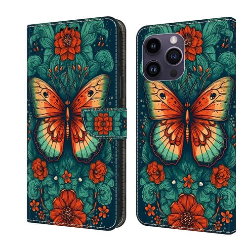 Funda de Cuero para iPhone 11 Pro Max Pintada con Cristales Mariposa de Flores