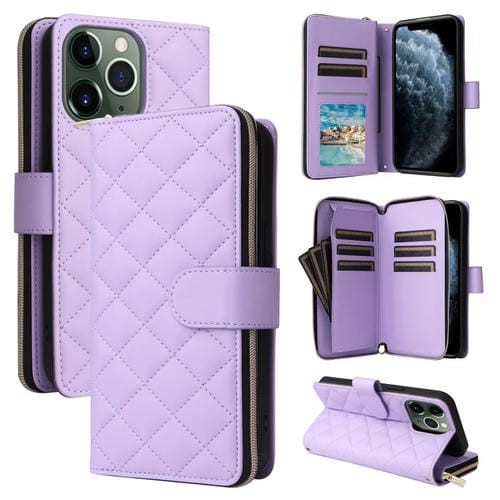 Funda para Teléfono iPhone 11 Pro Max Cuero Hebilla Torre Cremallera Rombal Cruzada Cordón (Púrpura)