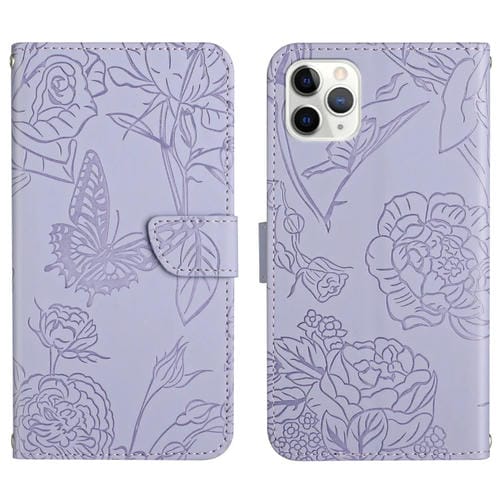 Funda de Cuero iPhone 11 Pro Max Skin Feel Butterfly Peony en Relieve (Púrpura)