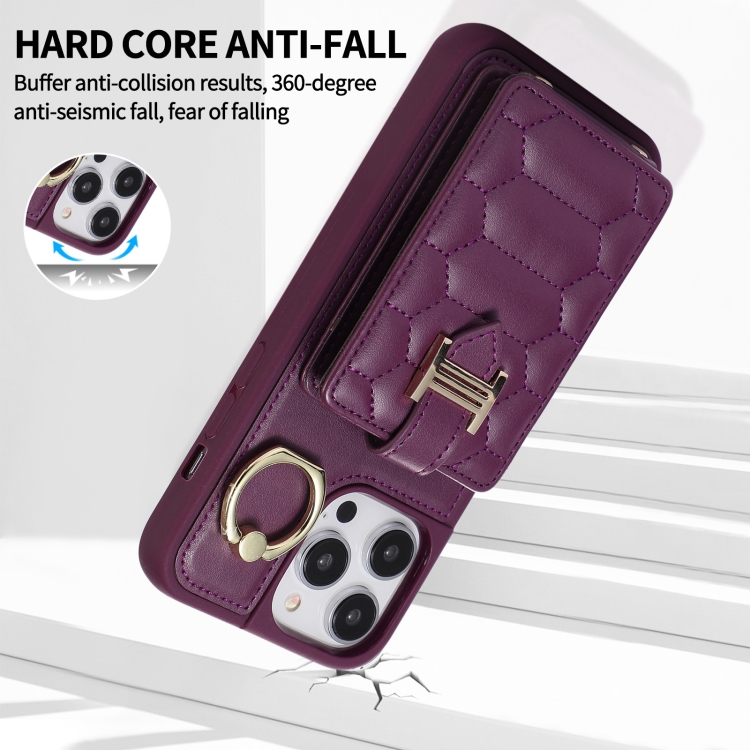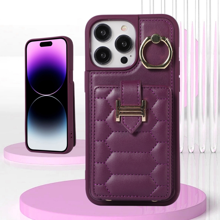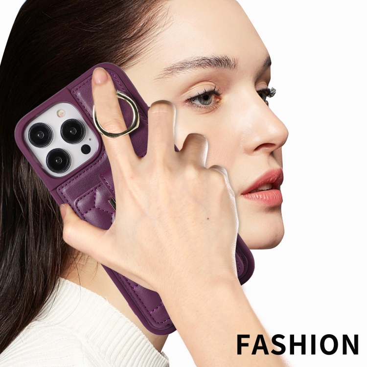 Funda para iPhone 11 Vertical Card Bag Ring Holder con Doble Cordón (Morado Oscuro)