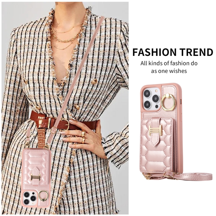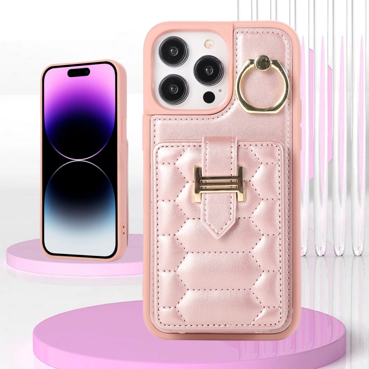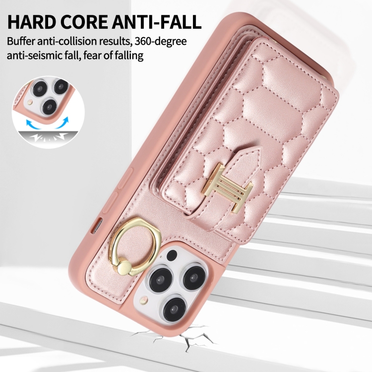 Funda para iPhone 11 Vertical Card Bag Ring Holder con Doble Cordón (Oro Rosa)