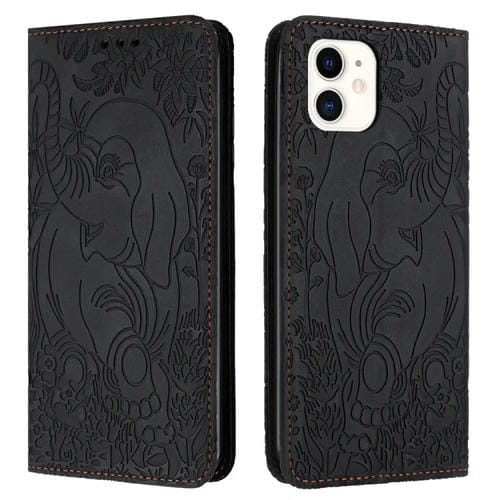 Funda para Teléfono iPhone 12/12 Pro Cuero con Relieve de Elefante Retro (Negro)