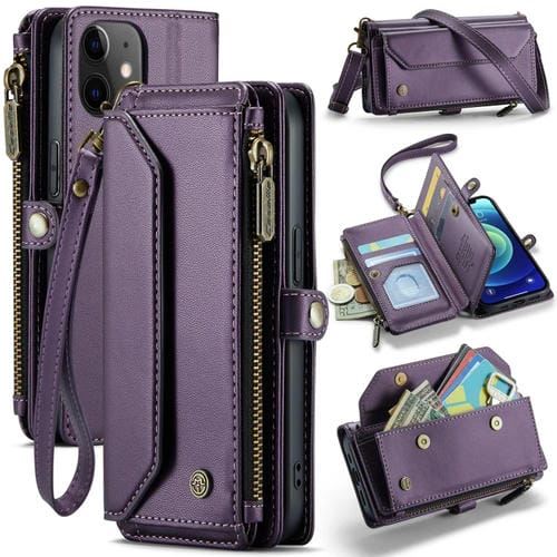 Estuche para Teléfono Caseme C36 para iPhone 12 Cartera con Ranuras para Tarjetas Cremallera Antirrobo Rfid (Púrpura)