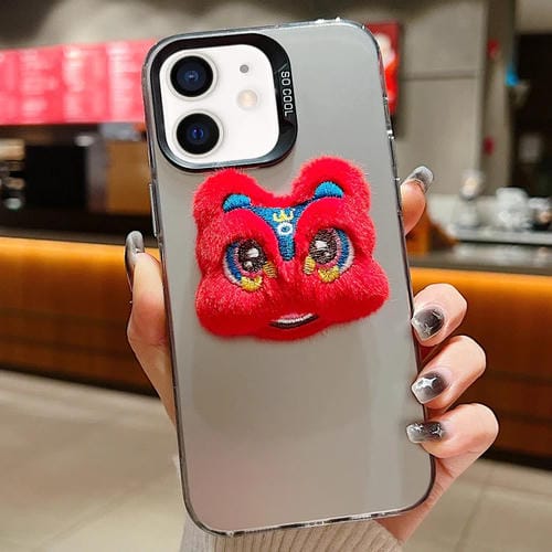 Funda para Teléfono iPhone 12 con Muñeco de Peluche y Danza del León de Año Nuevo (Rojo, Gris)