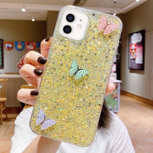 Funda para Teléfono TPU Epoxi para iPhone 12 con Lentejuelas Estrelladas y Diamantes de Imitación (Amarillo)