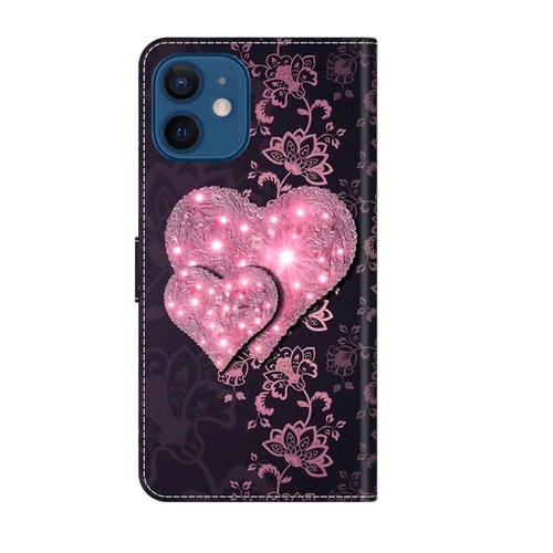 Funda Protectora de Cuero para iPhone 12 Mini y 13 Mini Crystal 3D a Prueba de Golpes (Lace Love)
