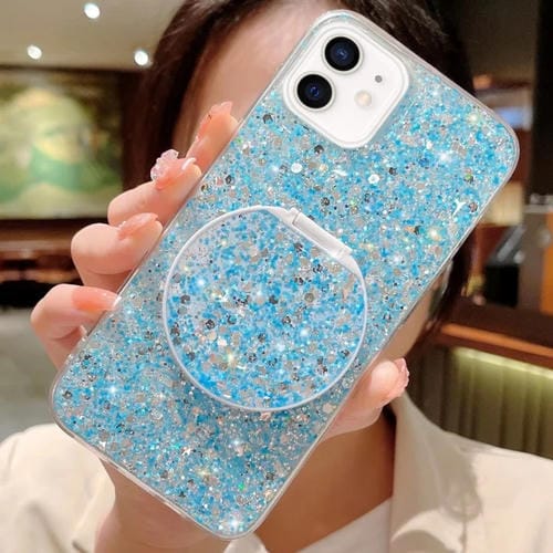 Funda para iPhone 12 Mini TPU Epoxi con Soporte Espejo Redondo y Lentejuelas Estrelladas (Azul)