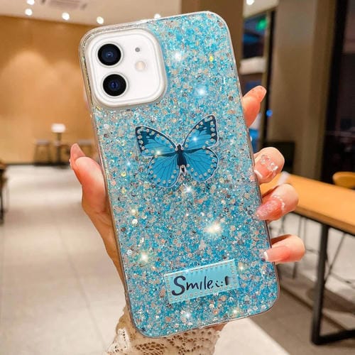 Funda para iPhone 12 Mini TPU Epoxi con Diamantes de Imitación y Lentejuelas Estrelladas (Azul)