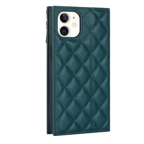 Funda de Cuero con Cremallera para iPhone 12 Mini Grid Texture y Lanyard (Verde)