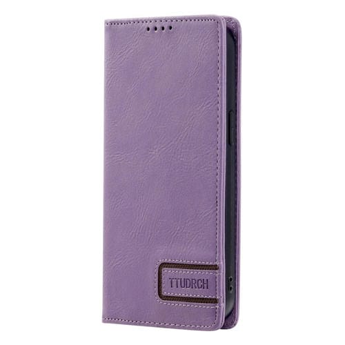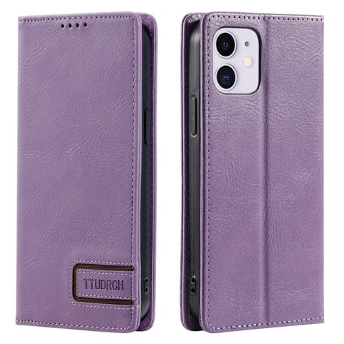 Funda de teléfono Ttudrch para iPhone 12 Mini con bloqueo RFID Cuero magnético textura retro (Púrpura)