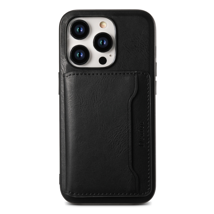 Funda para Teléfono Denior iPhone 12 Pro con Billetera Desmontable Magsafe Cuero Textura Piel de Vaca (Negro)