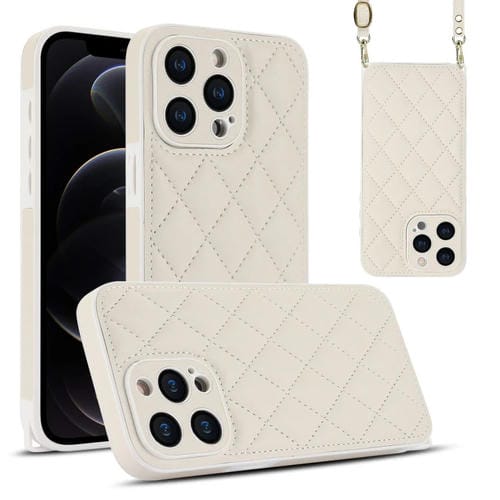 Estuche para Teléfono iPhone 12 Pro Textura Rómbica Cordón Doble (Blanco)