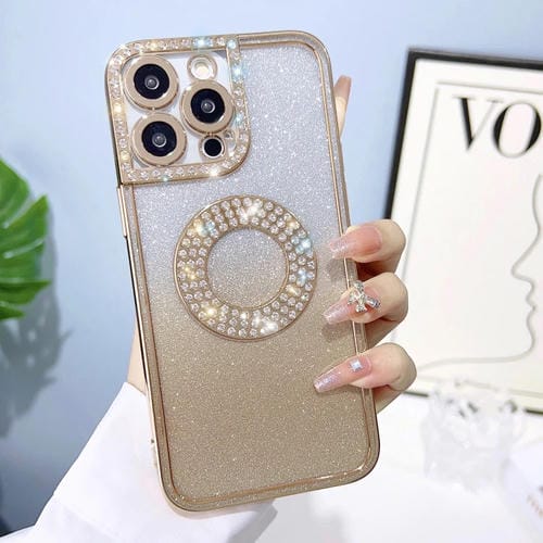 Caja de teléfono para iPhone 12 Pro Max con brillo degradado de diamante electrochapado (Oro)