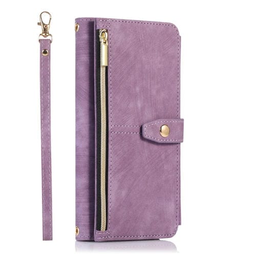 Funda de Cuero para Teléfono iPhone 12 Pro Max Dream 9-Card Wallet Zipper Bag (Púrpura)