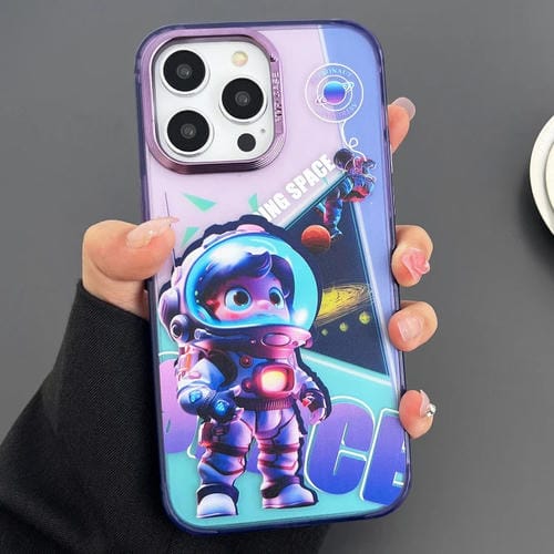 Estuche para teléfono iPhone 12 Pro Max con Astronauta Colorido Grabado (Pequeño Púrpura)
