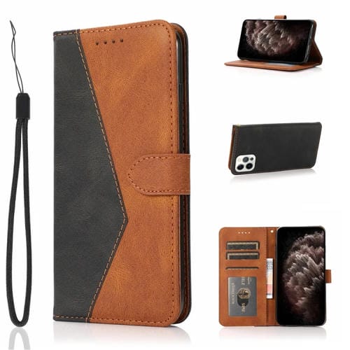 Estuche para Teléfono iPhone 12 Pro Max Cuero con Costuras de Dos Colores (Marrón Negro)
