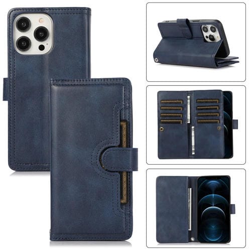 Funda para Teléfono iPhone 12 Pro Max Cuero con Ranura para Tarjeta y Pulsera (Azul)