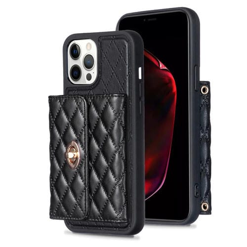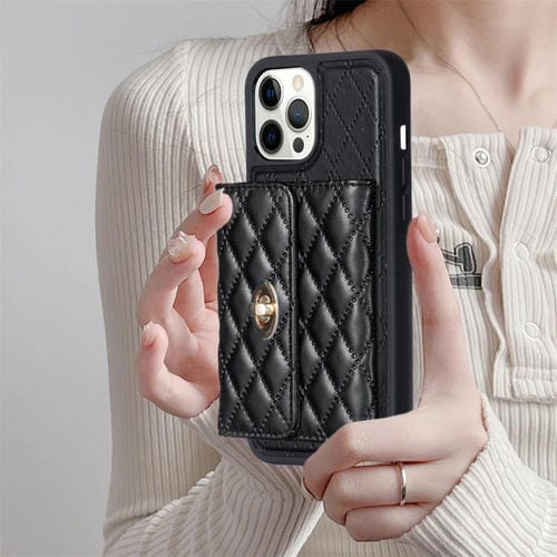 Funda de Cuero para iPhone 12 Pro Max Horizontal Metal Hebilla Cartera Rombico (Negro)