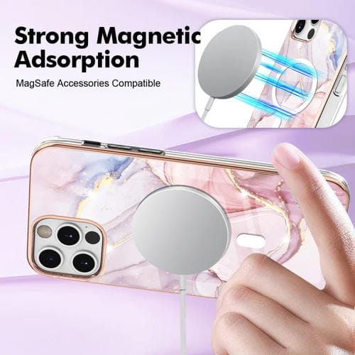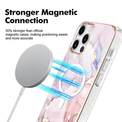 Funda para iPhone 12 Pro Max Marble Pattern Dual-Side Imd Magsafe TPU (Oro Rosa)