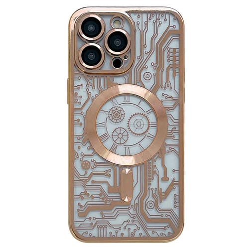 Estuche para Teléfono iPhone 12 Pro Max Patrón de Placa de Circuito Electrochapado Magsafe (Oro)