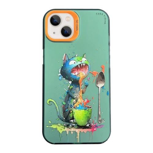 Funda para teléfono iPhone 13 Cartoon Animal Graffiti PC y TPU (Gato Azul)