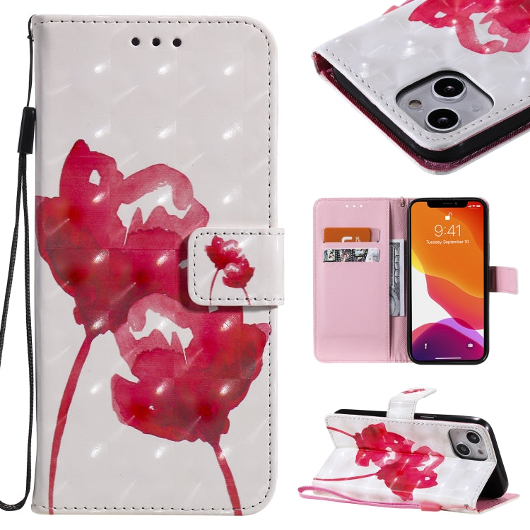 Estuche de Cuero para iPhone 13 con Tapa Horizontal, Patrón 3D, Soporte y Ranuras para Tarjetas (Rosa Roja)