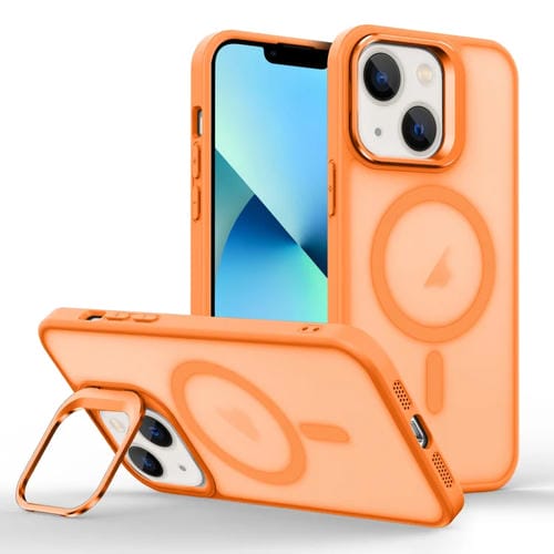 Estuche para teléfono Magsafe iPhone 13 Skin Feel con soporte para Lentes (Naranja)