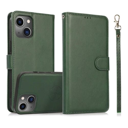 Funda para iPhone 13 Mini Calf Texture 2 en 1 Cubierta Trasera Magnética Desmontable con Tapa Horizontal y Ranuras (Verde)