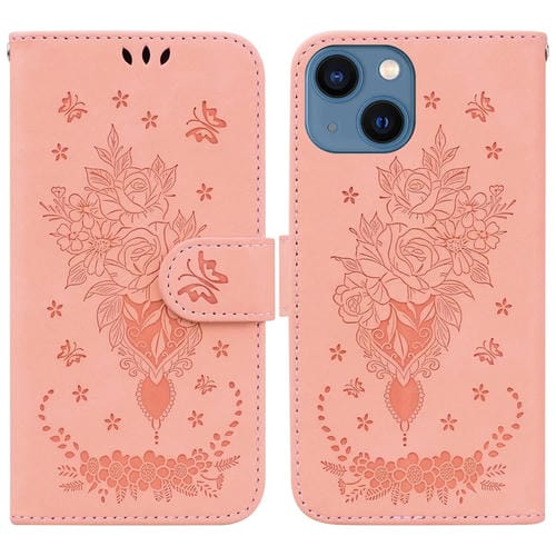 Estuche para Teléfono iPhone 13 Mini Cuero en Relieve Butterfly Rose (Rosa)