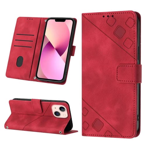 Estuche para Teléfono iPhone 13 Mini Cuero En Relieve Tacto de Piel (Rojo)