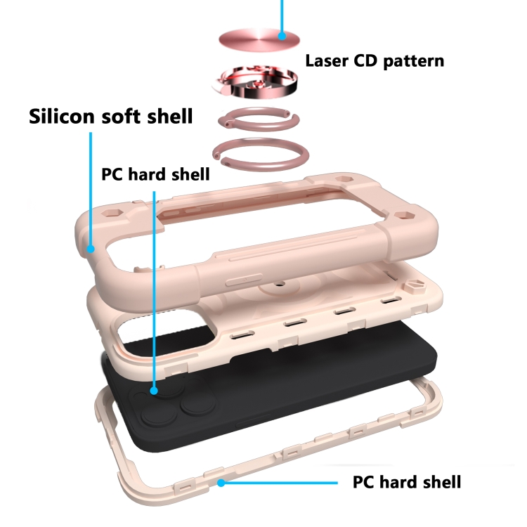 Funda Protectora para iPhone 13 Mini Silicona a Prueba de Golpes + PC Soporte Doble Anillo (Oro Rosa)