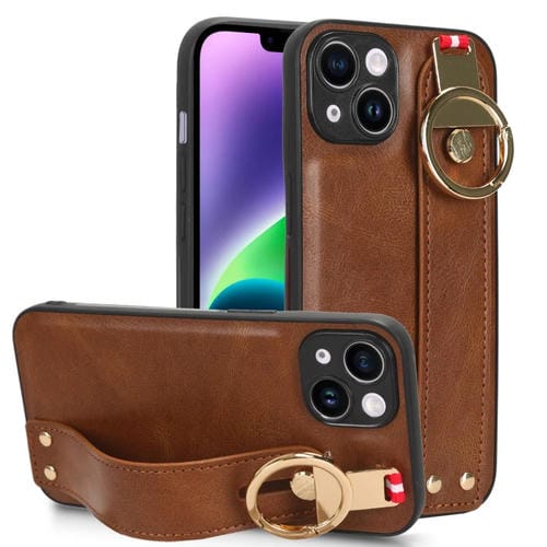 Funda Trasera Muñequera para iPhone 13 Cuero (Marrón)